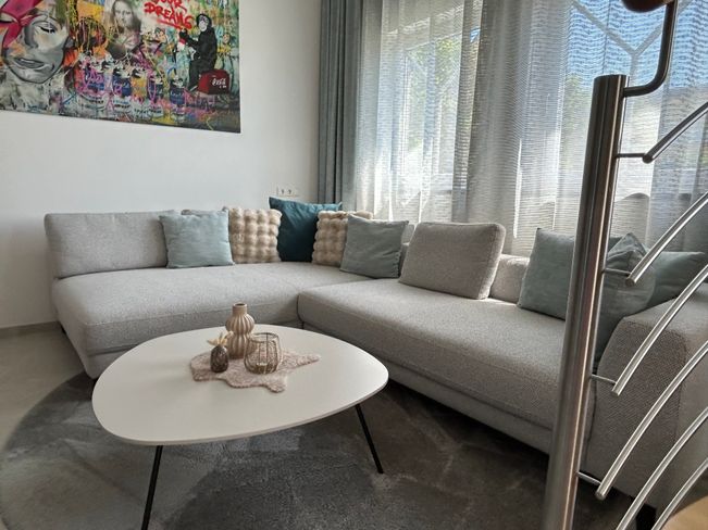 Willkommen in dieser charmanten Wohnung, die durch ihre stilvolle Einrichtung besticht. Die Küche ist modern und funktional mit Zusatzherd gestaltet, ideal für kulinarische Abenteuer und gesellige Abende. Der Wohnbereich lädt zum Entspannen ein und bietet ausreichend Platz für gemütliche Stunden mit Familie und Freunden.